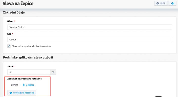 - Slevu je možno nastavit pouze na kategorii jednu nebo více