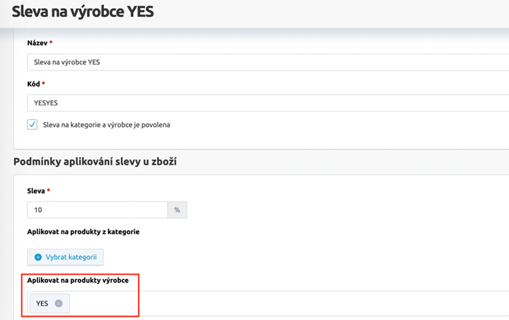 - Slevu je možno nastavit na kategorii a výrobce zároveň