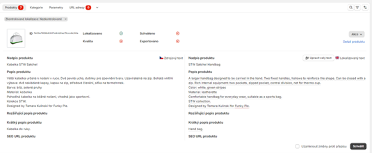 Po přeložení aplikací LOCO můžete překlady schválit v sekci Produkty – Kontrola lokalizace.