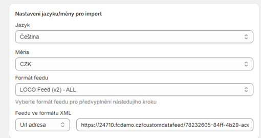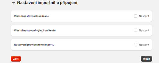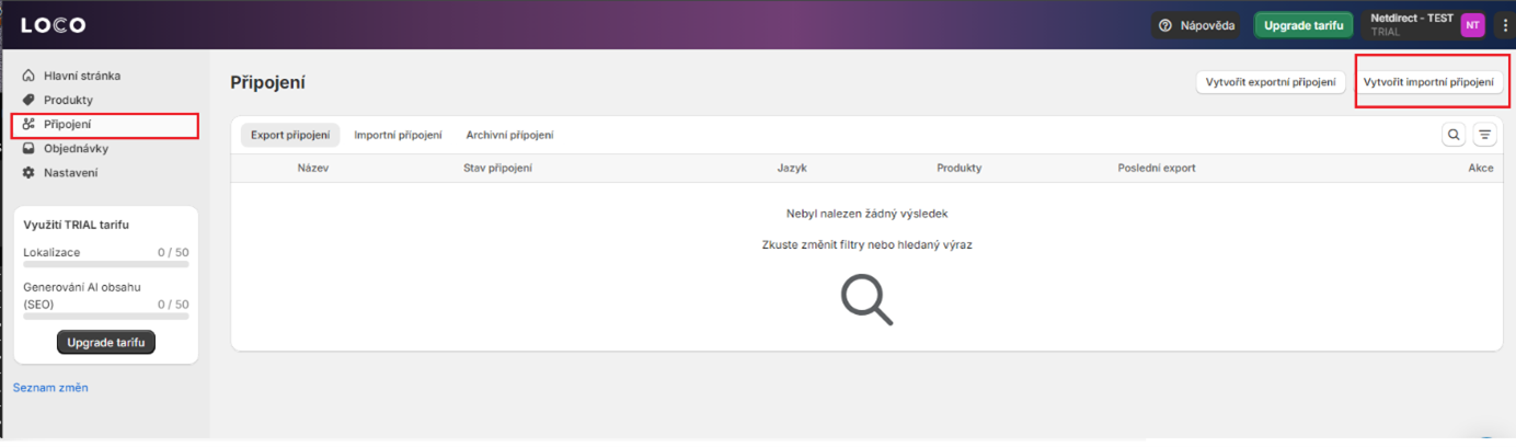 V LOCO přejděte do nabídky – Připojení a vytvořte importní připojení. Následně projděte nastavení podle