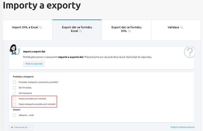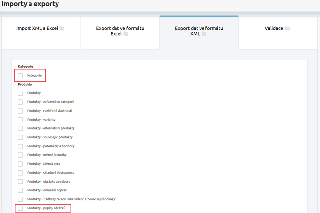XML: import/export pre produkty a rozšírený export pre kategórie