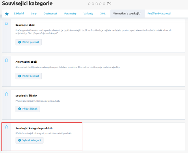 V administrácii môžete ku každému produktu priradiť aj súvisiace kategórie – napríklad odporučiť „Camping“ k produktu „Stan“.