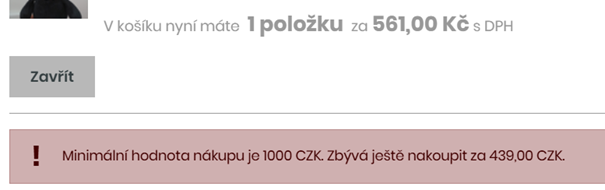 Nastavte minimálnu cenu objednávky bez zložitých „kľučiek“. Zákazník vidí, koľko mu chýba do minima, a bez jeho dosiahnutia neprejde k doprave a platbe. Eliminujete tak zbytočné nedokončené košíky.