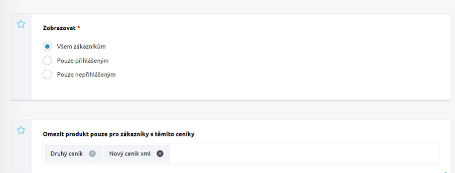 Obmedzenie zobrazenia podľa cenníkov