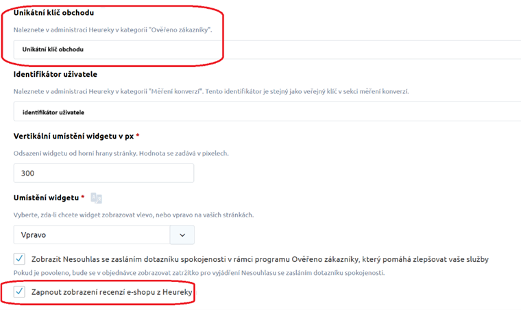 Kde zapnúť: Prepojenie → Porovnávače cien → Heureka – Overené zákazníkmi. Vyplňte unikátny kľúč obchodu a zapnite zobrazenie recenzií. V roku 2026 chystáme pohodlnejšie úpravy priamo v administrácii.